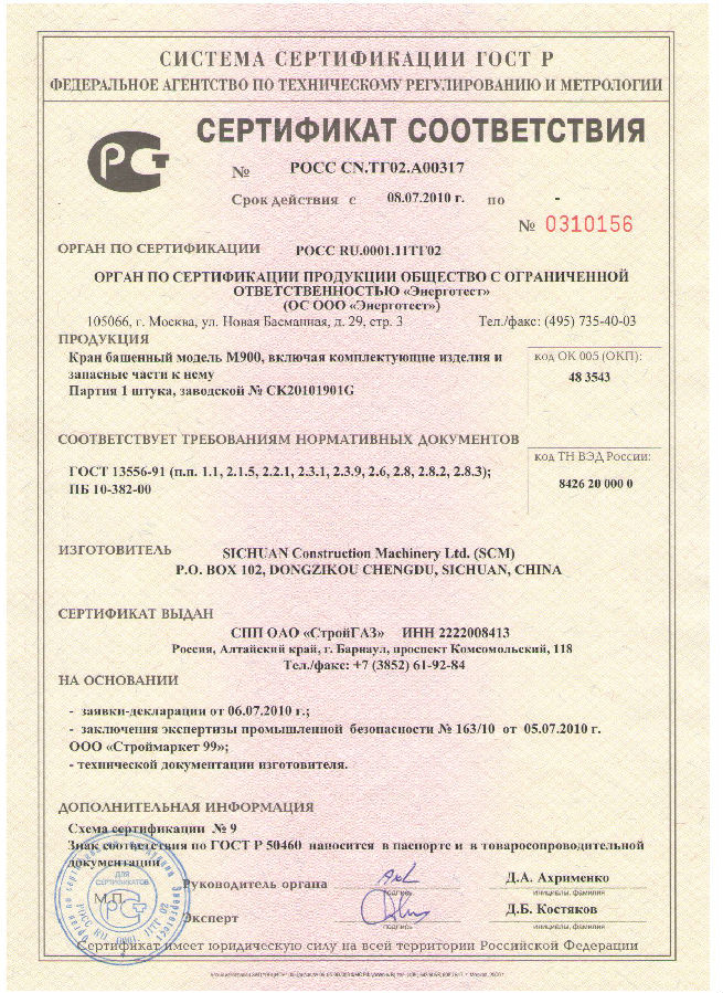 M1000塔機(jī)通過(guò)型式試驗(yàn);