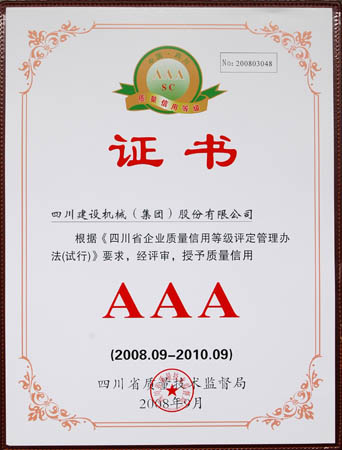 1月 四川省質(zhì)量技術(shù)監(jiān)督局授予質(zhì)量信用AAA證書(shū);
