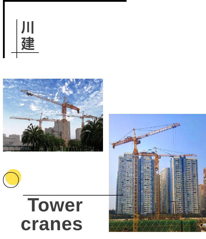 川建M1000塔式起重機(jī)起重臂長70米,最大吊重50噸,端部吊重12噸,塔身截面4米;川建C8039塔式起重機(jī)起重臂長80米,最大吊重25噸,端部吊重3.9噸,塔身截面2.5米;兩種機(jī)型均具有行走式、固定式兩種基礎(chǔ)形式。