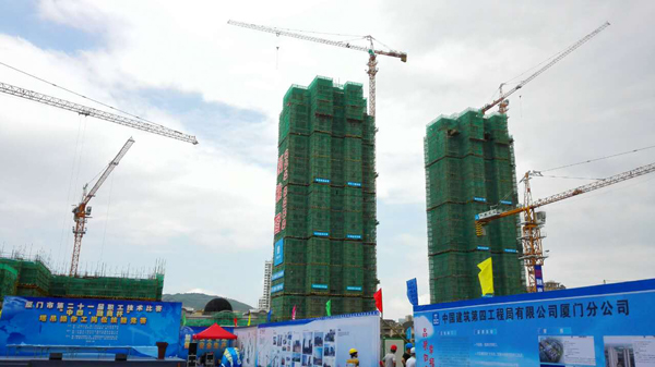 本次比賽地點(diǎn)設(shè)在海滄生態(tài)花園項(xiàng)目施工部。該項(xiàng)目共有川建8臺(tái)塔機(jī)參與施工,其中6臺(tái)C6013塔機(jī)、2臺(tái)C6010塔機(jī)。該項(xiàng)目為民建住宅,建筑面積約20萬平方米,為 46層超高層住宅,最終塔機(jī)使用高度將達(dá)到150米。本次比賽該項(xiàng)目8臺(tái)塔機(jī)作為比賽專用塔機(jī),其中5臺(tái)塔機(jī)用于比賽,另有3臺(tái)塔機(jī)作為備用。