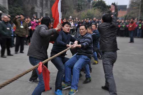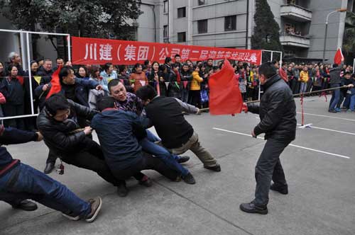 2015年1月,川建(集團(tuán))開展“迎春拔河比賽”活動,活動主旨為豐富員工的文化生活,增強(qiáng)員工的體育鍛煉意識,提高團(tuán)隊合作精神,進(jìn)一步增強(qiáng)企業(yè)凝聚力。