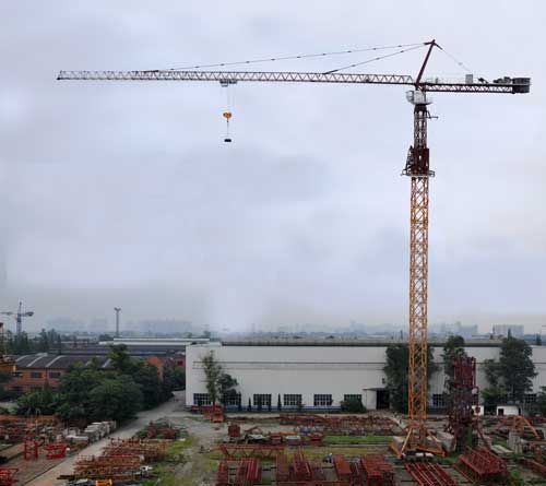 P7527平頭式塔機(jī)是大型平頭式塔機(jī),最大起重量18t,端部吊重2.7t,最大工作幅度75m,標(biāo)準(zhǔn)節(jié)斷面分2m和2.5m兩種,固定式最大起升高度分別為60.7m和76.86m,特別適合于群塔作業(yè)。
